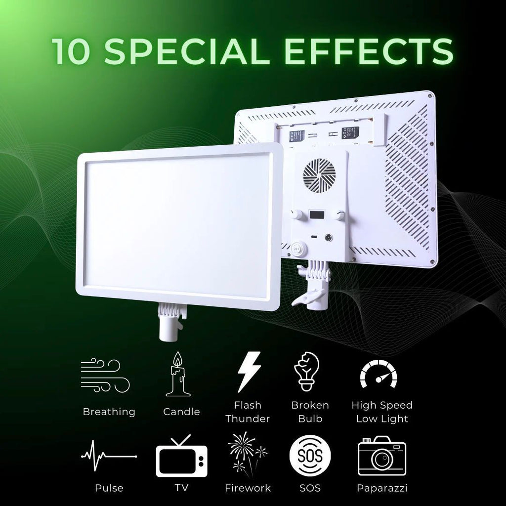 The ICON 17R  LED panel light  is a professional LED light with an ultra-thin design that’s practical for photography, videography, and makeup. With 60W of power and 196 LEDs, this light delivers powerful, stable, and even lighting.