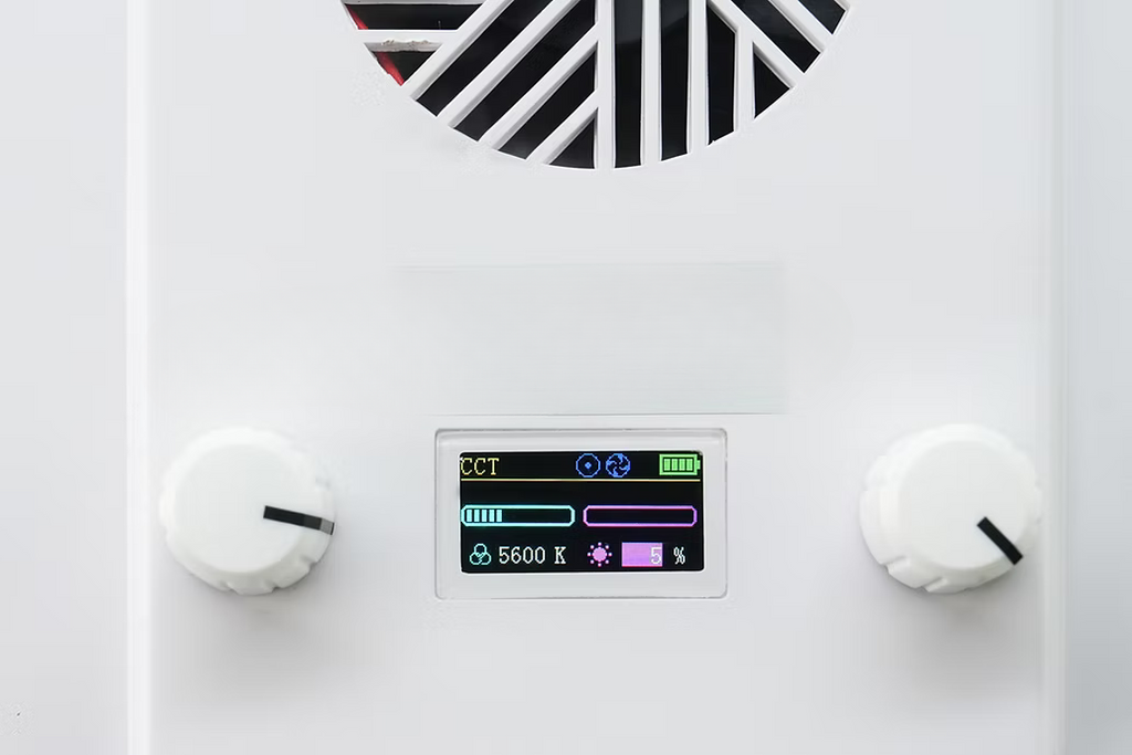 The power source is very flexible because it supports  DC 20V/5A, NP-F Series Batteries, and Type-C 20V/5A . The lighting can be adjusted directly using the knob or via  a smartphone application (APP Control)  , which makes it easy to control remotely.