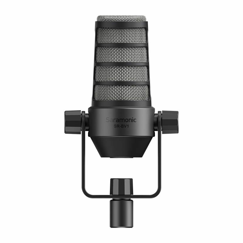 Saramonic SR-BV1 Cardioid Dynamic Microphone. The cardioid pickup pattern focuses on capturing the sound in front of the mic, while offering a high level of background-noise rejection—great for crisp-sounding streaming and podcasting applications even in rooms with less-than-perfect acoustics. The microphone features an integrated swivel shockmount designed to provide isolation from external physical factors that may cause unwanted rumble and vibrations. Featuring a rugged, all-metal construction, the SR-BV1 comes with an adjustable mounting bracket, enabling you to attach it to any industry-standard microphone stand or boom arm With a dynamic capsule and a wide 20 Hz to 20 kHz frequency response, the SR-BV1 provides silky smooth high frequencies, detailed midrange response, and warm, round, bass reproduction, ideal for recording speech, vocals, and a wide variety of instruments with a rich and balanced sound. Equipped with a built-in pop filter that minimizes plosives and a removable foam windscreen, the mic is a perfect choice for close-recording applications Gold-plated XLR connector ensure the integrity of your audio signal No power is required Podcasters, streamers, and content creators can get a warm, up-close broadcast-quality sound from their voice